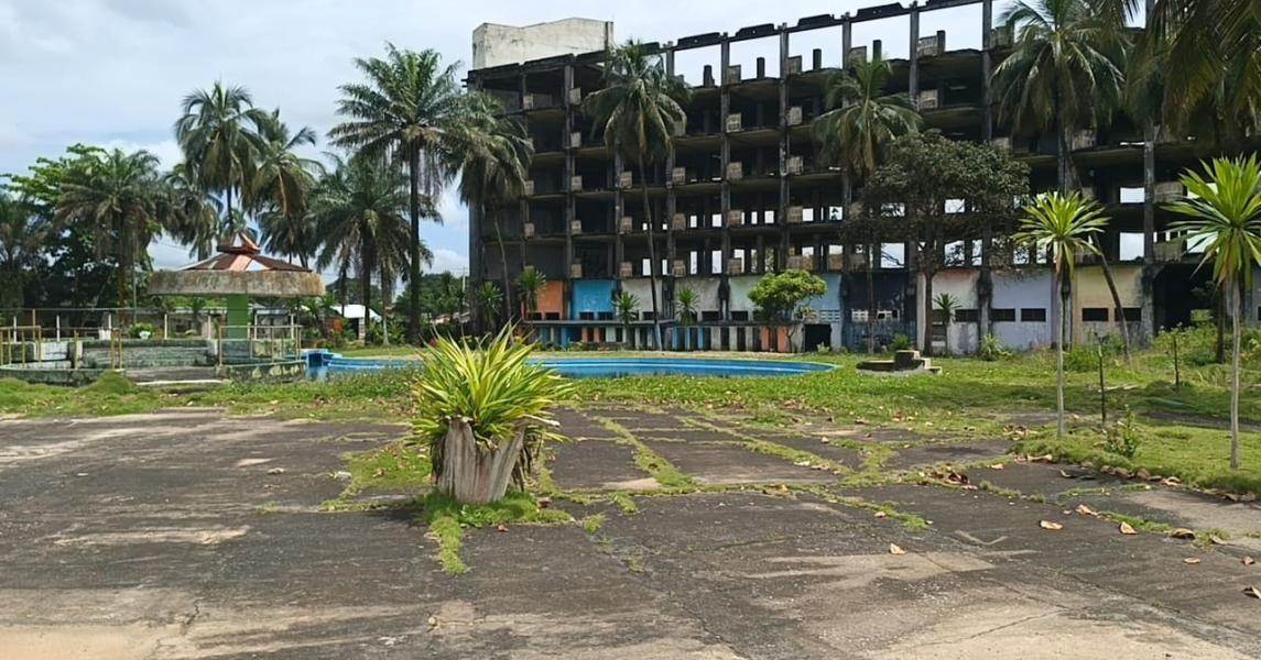 Hotel Africa, a former luxury resort and a pristine five-star hotel in Africa, was constructed in 1979 to host the Organization of African Unity (OAU) summit in Monrovia, Liberia. The complex featured a main hotel, separate villas for heads of state, a conference center, a casino, and a golf course. During the Liberian Civil War (1990-2003), the hotel was looted, damaged, and used by rebel forces for attacks. Following the war, the site was repurposed by the United Nations for troops and later occupied by citizens, remaining in a state of disrepair despite various redevelopment plans.
